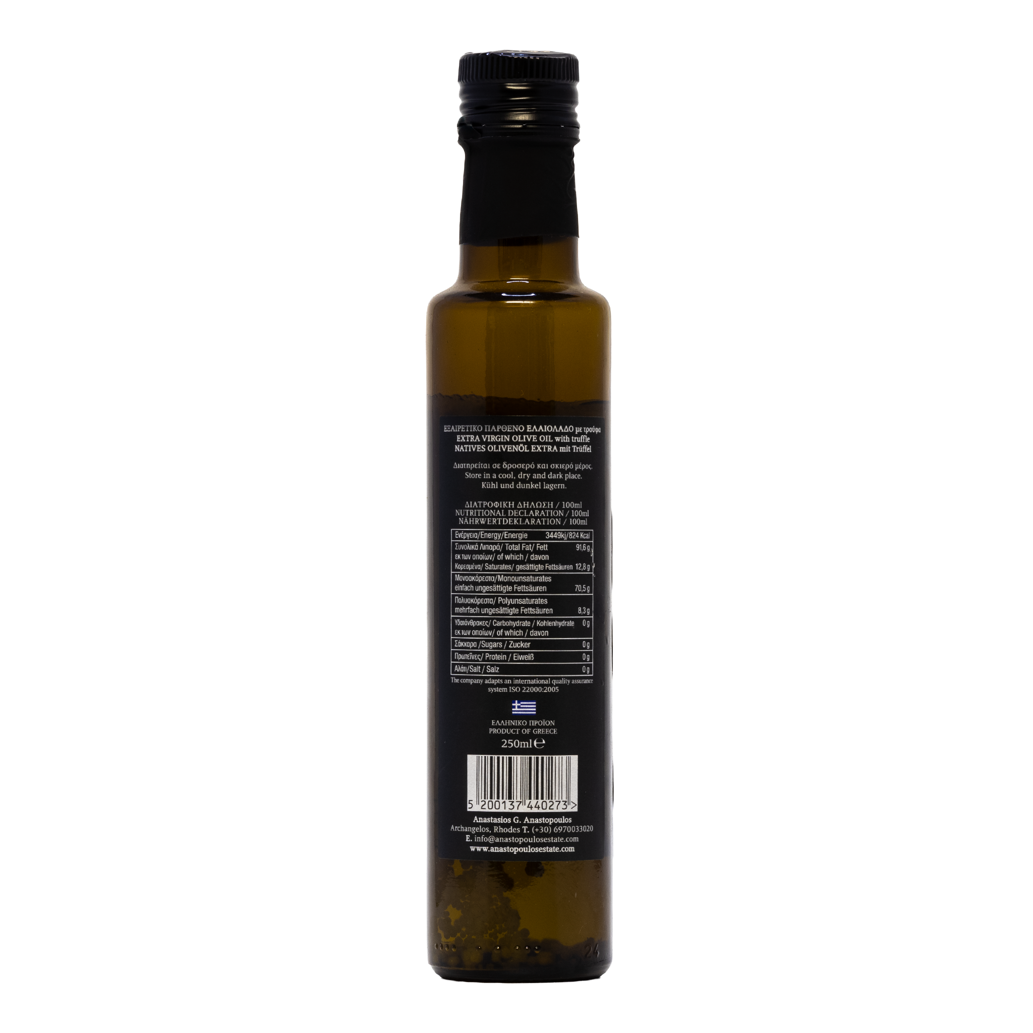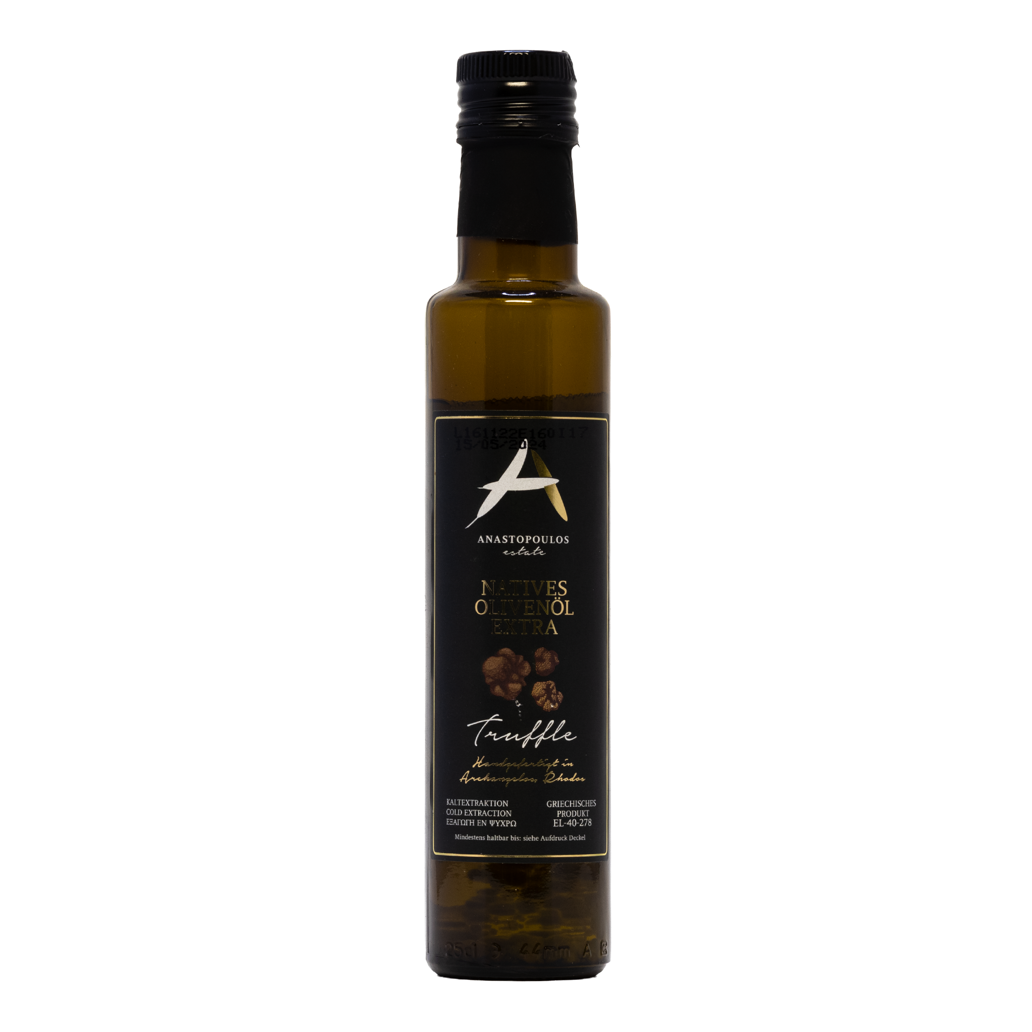 Das native Olivenöl Extra mit Trüffel von Archangelos stammt aus Griechenland und wird ausschließlich aus handverlesenen Oliven durch rein mechanische Verfahren gewonnen. Produziert vom Betrieb Anastasios G. Anastopoulos auf Rhodos steht dieses Olivenöl für höchste Qualität, sorgfältige Verarbeitung und authentischen Olivengenuss.